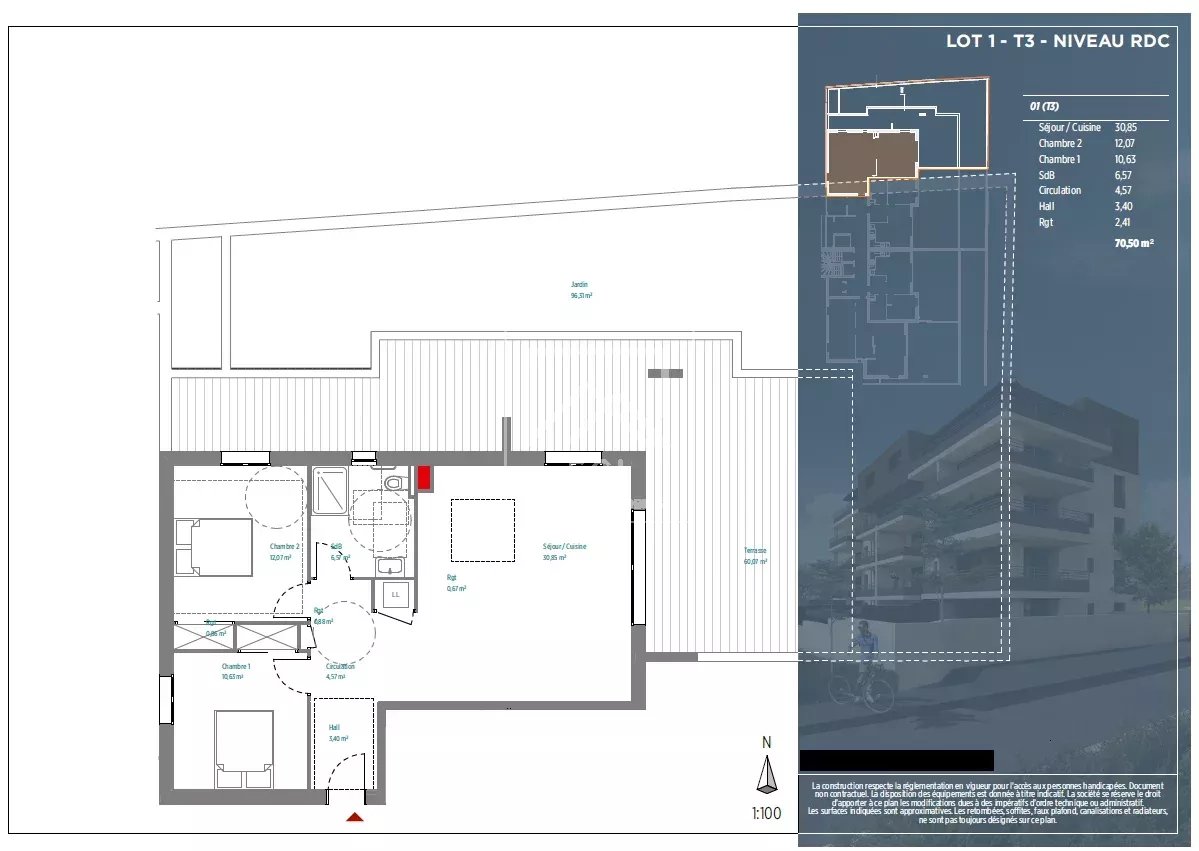 Très bel emplacement pour cet appartement de 3 pièces situé en rez-de-jardin d'un immeuble en cours de construction, à quelques minutes à pied seulement du port de plaisance et de la haute ville.