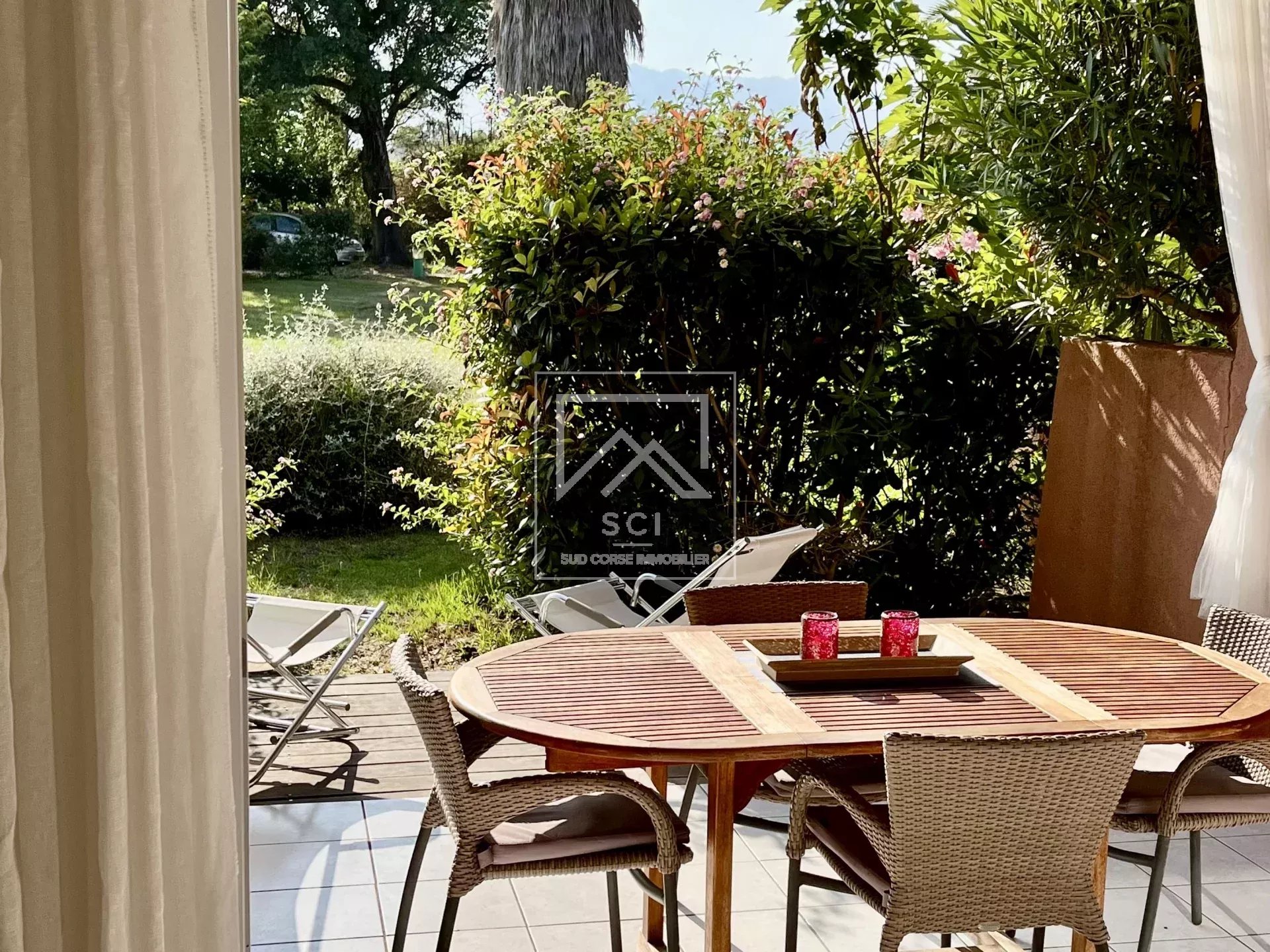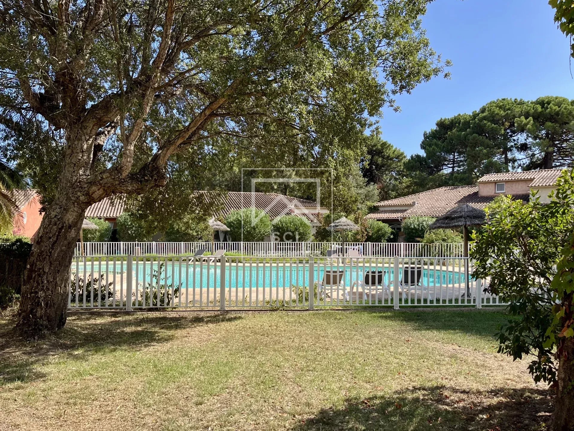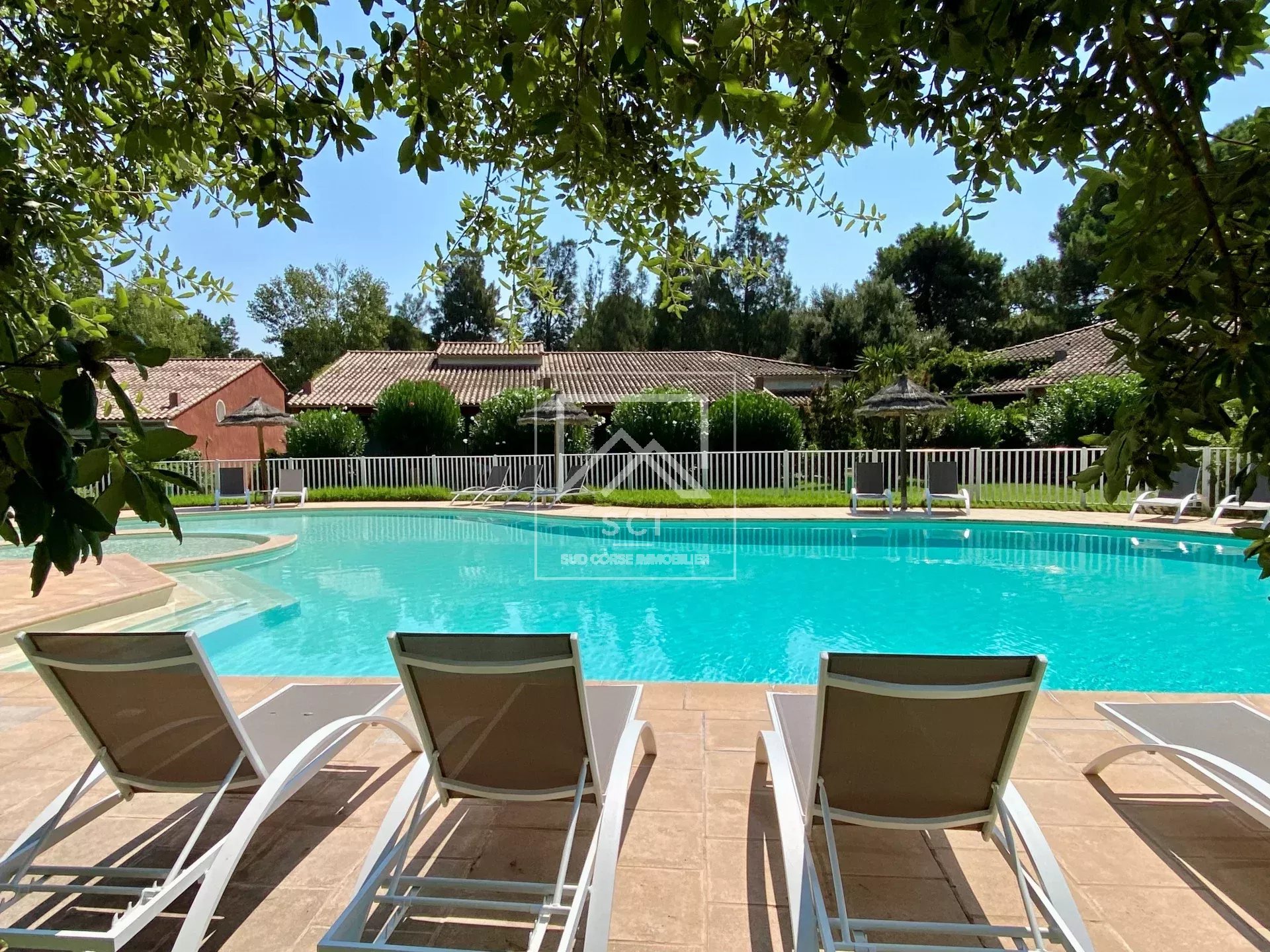 Emplacement privilégié pour cette mini-villa située dans une résidence avec piscine à proximité des plages de Saint Cyprien et Cala Rossa et 10 minutes du centre de Porto-Vecchio.