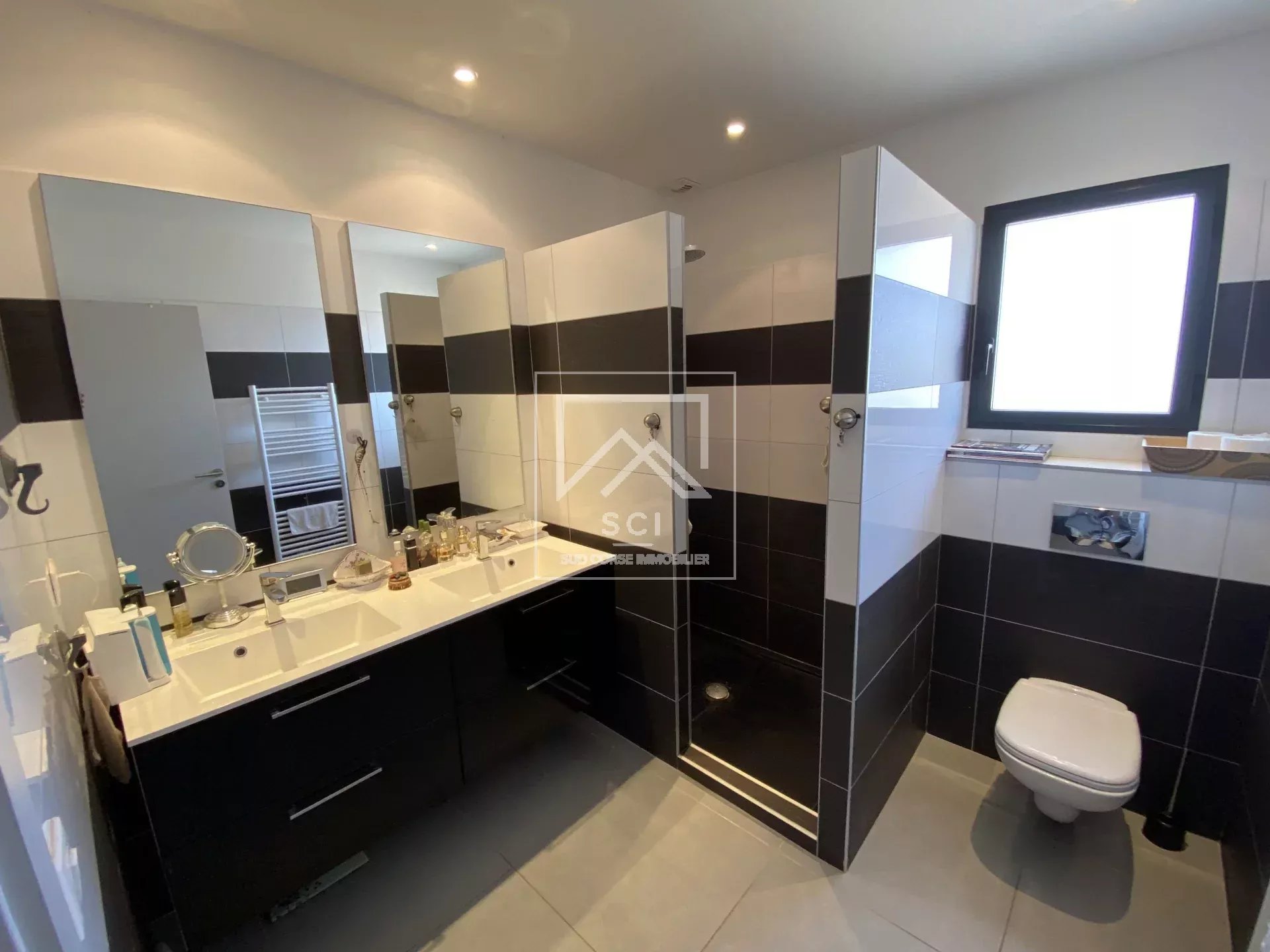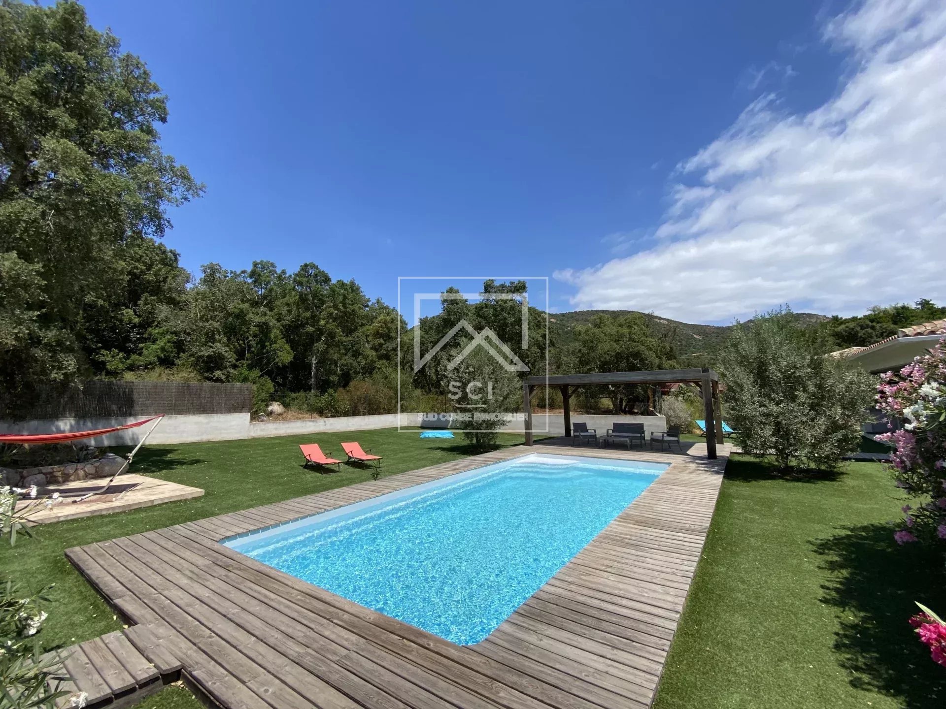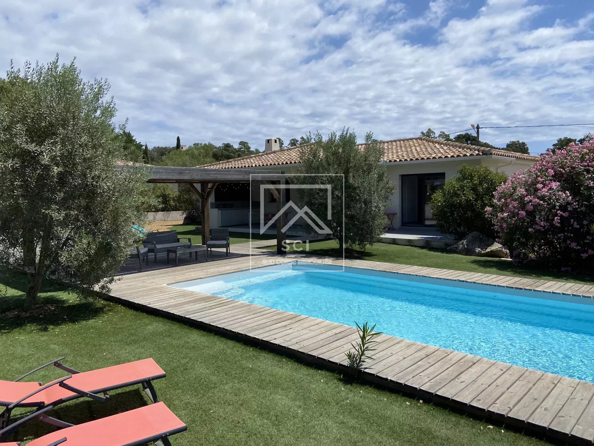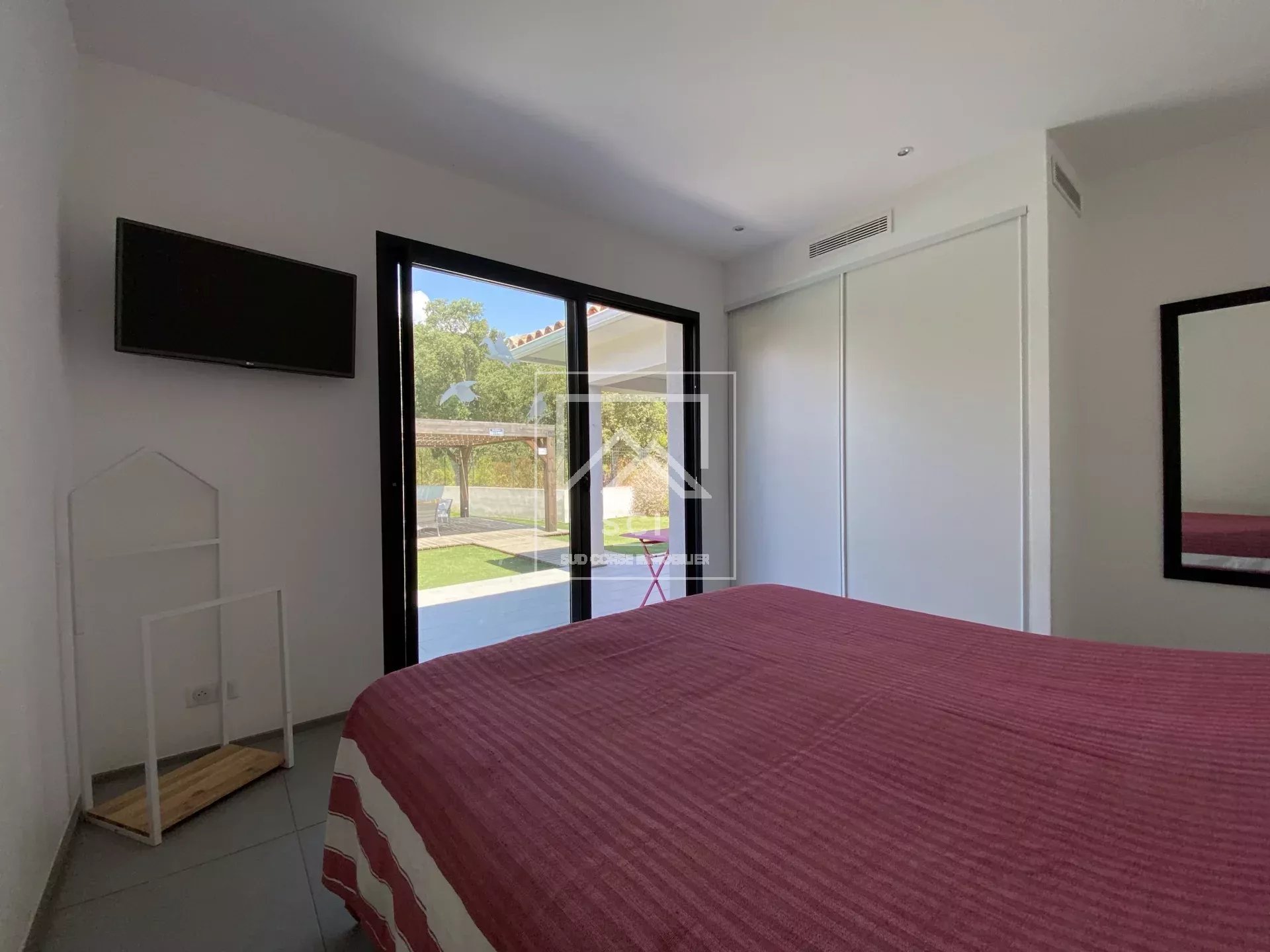 Environnement calme et préservé pour cette villa récente située à quelques minutes des plages et du centre du village de Sainte Lucie de Porto-Vecchio.