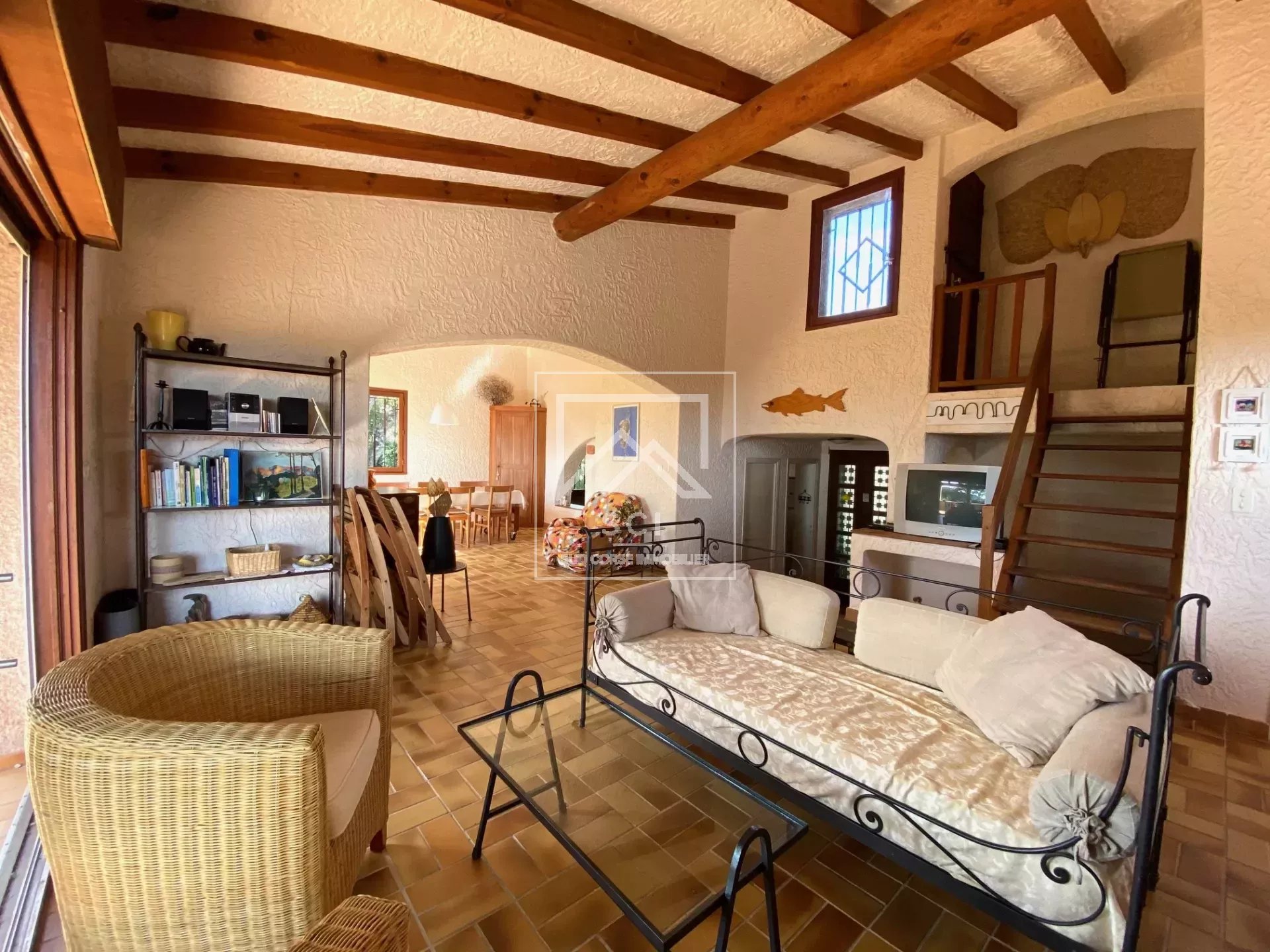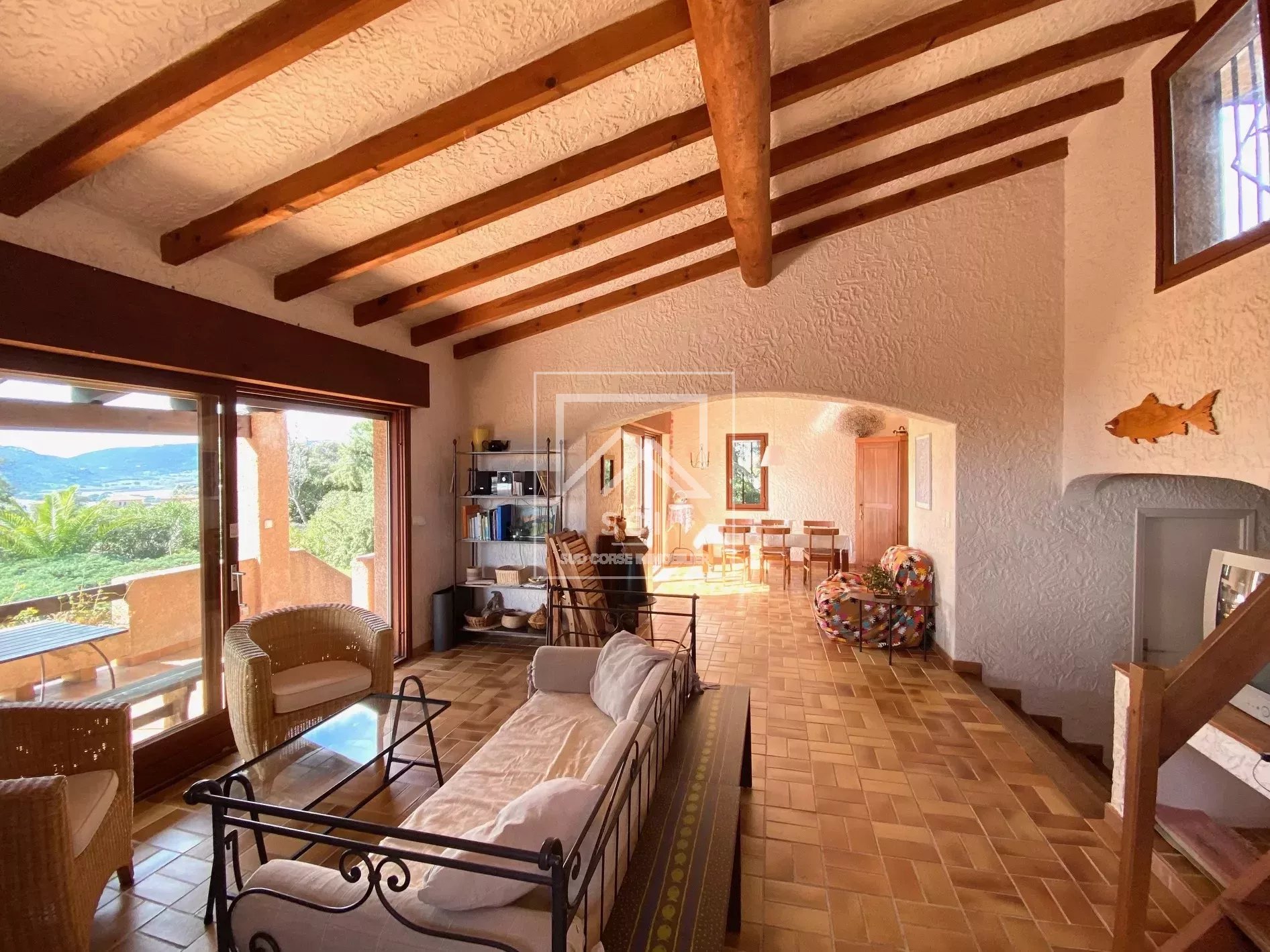 Climatisation, cheminée, terrasse solarium.